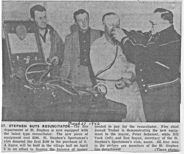 The fire phone was located in the office of Chief, Joe Trobec's bar. The siren for calling the men to a fire was installed on top of the facade of Vouk's Garage and had to be turned on and off by hand to affect the wail, which is a call to a fire. In the beginning, there were only about six sets of turnout gear for the men. An invoice was found in the records dated November 10, 1949, for two waterproof coats at $7.60 each and two helmets at $1.55 each